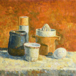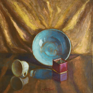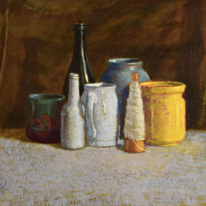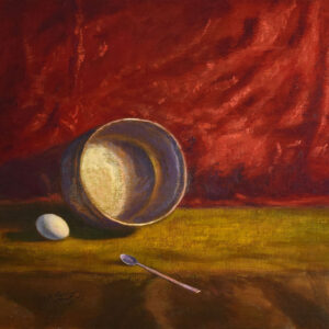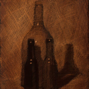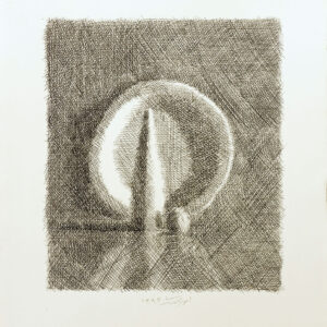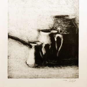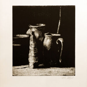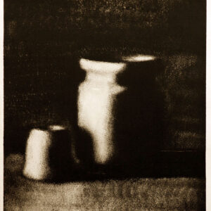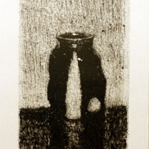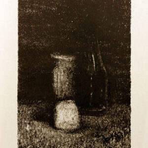 A piece of bread, some kitchen utensils, a teacup, and a dried lemon positioned alongside glass bottles: these items may all seem commonplace, if not banal. Amir Jadidi is a painter who, by focusing on still life and limiting the themes on which he works, offers the audience distinctive expressive capabilities, in the form of representations. Through his efforts to create, he opens a window onto something beyond simple and familiar subjects. His worldview is based on a type of identical representation, in which one can find traces of the legacy art history has left behind. In his drawings as well, one can witness a manifestation of the presence of light in a dark space. This is even more evident when the artist utilizes the lesser-known method of monotype. This method, which is considered the most painterly of printmaking techniques, can be categorized between painting, drawing, photography, and printmaking.
