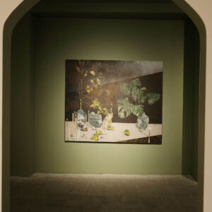 In this series, Faezeh endeavors, through her unconventional arrangements, to place objects and natural elements of our environment, including plants and animals, alongside symbols of human life and civilization, thus portraying a world that lingers on the verge of suspension, between nature that is dynamic and one that is still. With this approach, by focusing on the fundamental concept of determinism (‘algebra’) which has stood in contrast to the notion of free will throughout human existence, she suspends this algebra against the probability of change in existential conditions, toward being an object or gaining life.