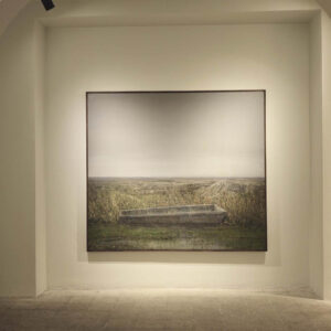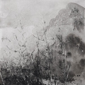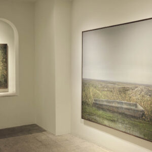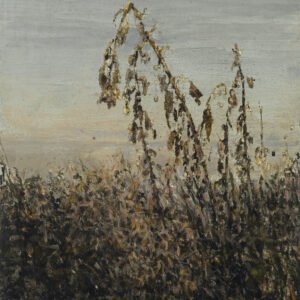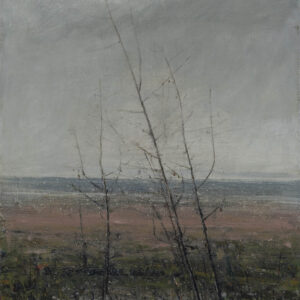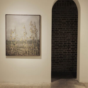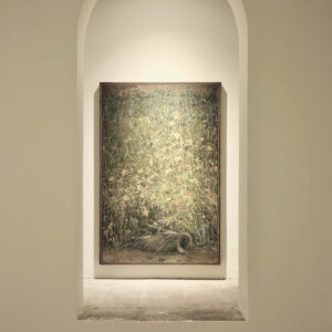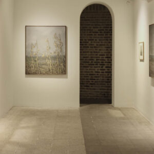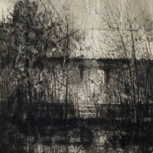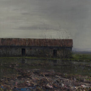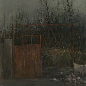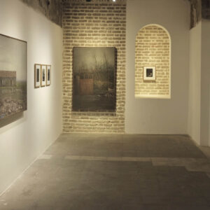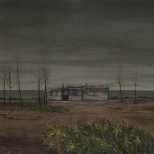 Abbas Nasle Shamloo has been known for his particular approach towards the longstanding genre of landscape art; Quiet, somber urban and natural landscapes surrounding small, lonely animal or human figures who appear stranded and vulnerable. “Grabbling” showcases the evolution of Nasle Shamloo’s art in the past couple of years as human figures begin to vanish from his landscapes, their presence only echoed in dark, derelict man-made structures and certain framed views, giving a sense of viewing the scene through someone’s eyes from behind a window (“Beyond Alienation”), and vast, shadow-less vistas full of bare trees and over-grown vegetation suggest the grim absence of sunlight (“The Land of No Sun”). More significantly, these seemingly representational landscapes are born out of the artist’s imagination and built upon many layers of additions and removals.