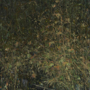 Without any preconceived ideas or sketches, Nasle Shamloo begins each work from scratch, relying instead on the actual painterly process, his memory, and the sensual experience of direct contact with nature to achieve the final image. His paintbrush acts like fingertips, constantly moving around, grabbling, as if scratching the surface to rediscover and recreate that essence of encounter with nature. The title, therefore, suggests a relentless tactile and mental aesthetic search both for form and meaning, a yearning for something that feels close yet remains elusive; that long-lost, vital link between nature and the alienated modern human.