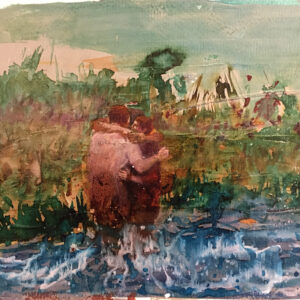 Humankinds, due to their connection to nature, have had a great influence in the manner in which it changes and consider it their most important safe haven. At the same time nature reminds us of the important meanings of life: birth, being and not being. The humans in my paintings both rise up from nature and are at the same time being dissolved in it.