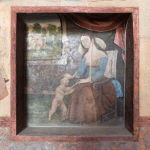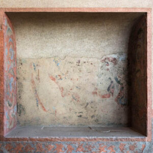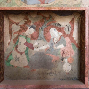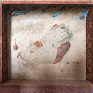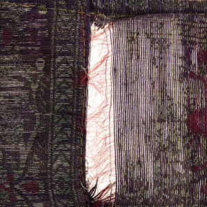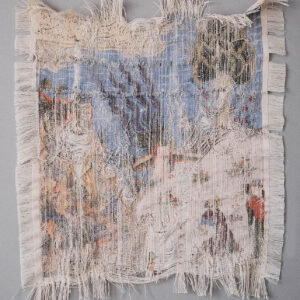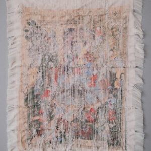 Some of her works represent her take on masterpieces of Iranian miniature, images printed on fabric and claimed as her own in a process of deliberate destruction. In addition to these concerns, her trip to Isfahan and a visit to Ali Qapu Palace inspired her to photograph wall paintings that had either deteriorated with time or had been vandalized by visitors.